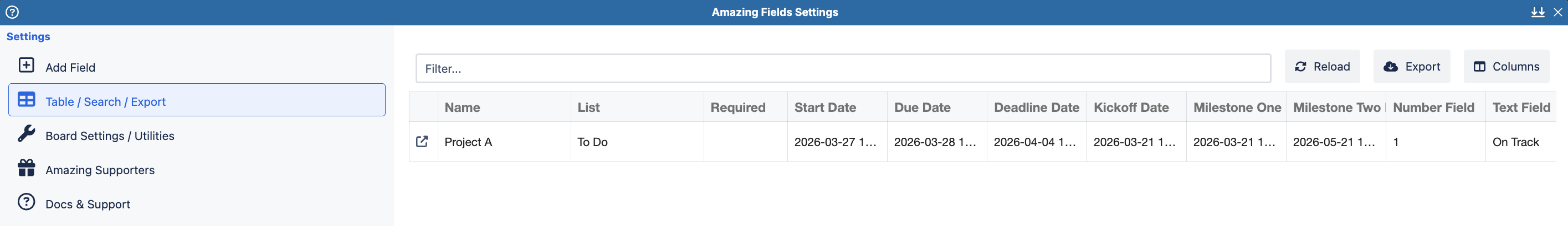 Amazing Fields includes a built-in Table View that lets you filter cards by any field value in real time, without needing to set up a Custom Field Wrapper. Results are displayed in a table layout, and you can open individual cards directly from the view or export the data.
