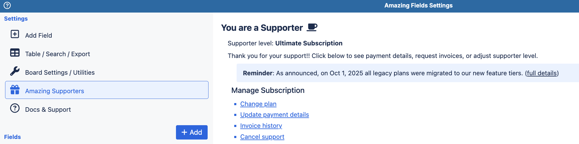 How to View and Manage Your Amazing Fields Supporter Subscription
