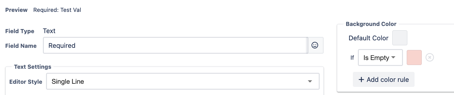 - Add a new rule: set the background color to red when the field value is empty.