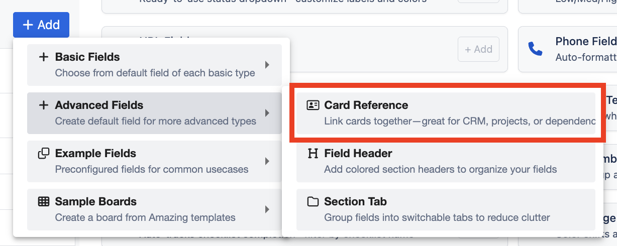 Card Reference Fields in Amazing Fields for Trello