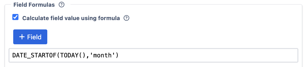 | Start of the current month | DATE_STARTOF(TODAY(), 'month') | First day of this month |