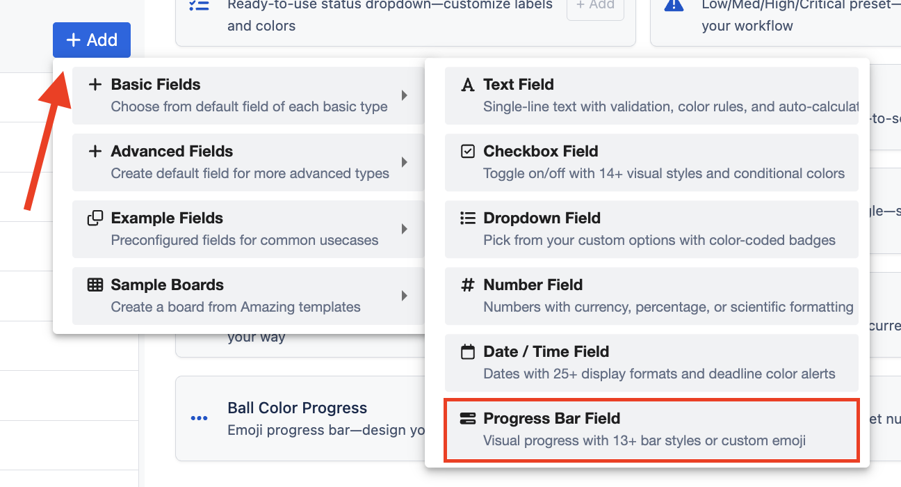 - Choose "Progress Bar Field" under "Basic Fields."