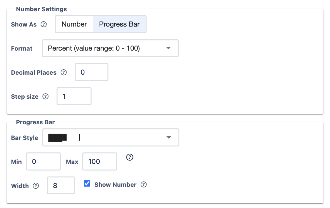- Format: Choose whether the progress bar displays values from 0–100 or 0.0–1.0.